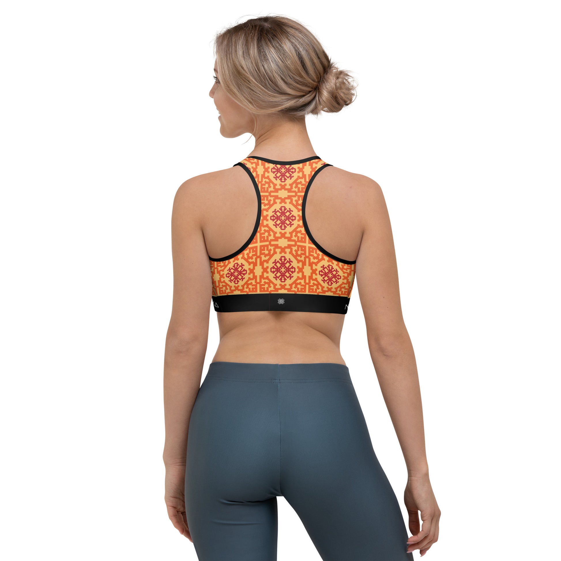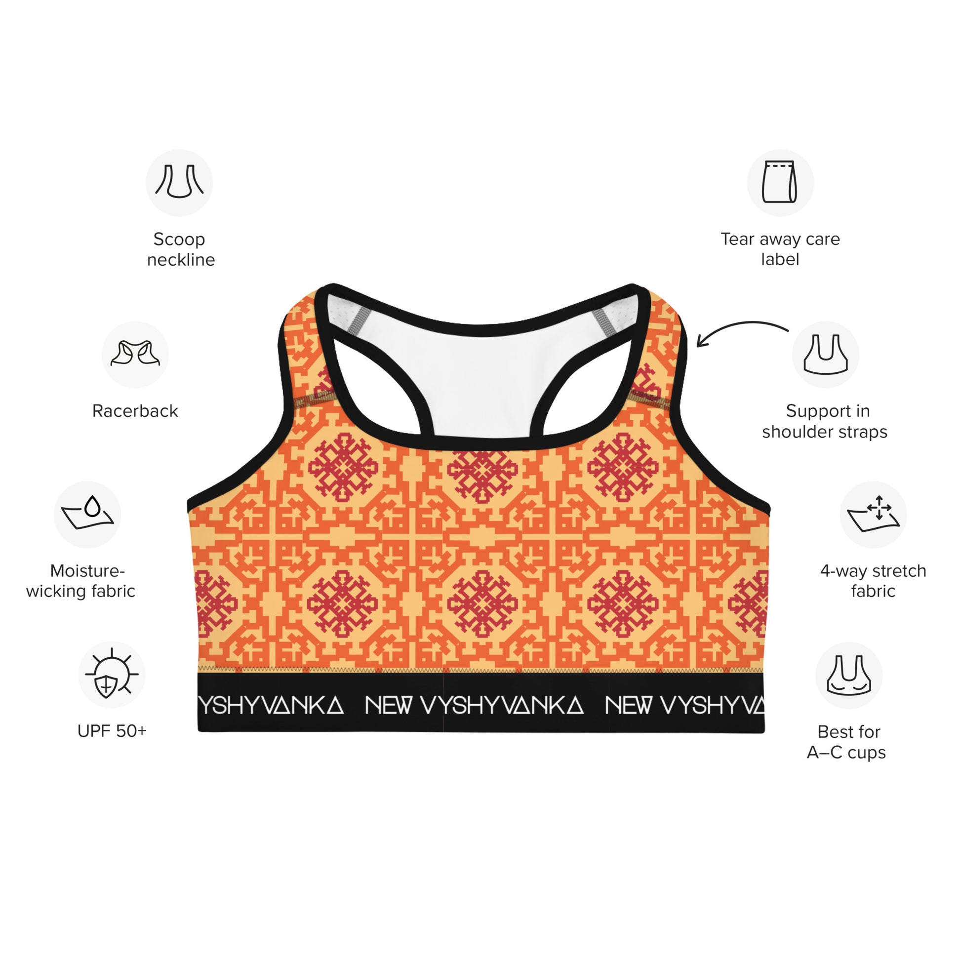 This gorgeous sports bra is made from moisture-wicking material that stays dry during low and medium intensity workouts. The bra has support material in the shoulder straps, double layer front, and a wide elastic band to ensure constant support.