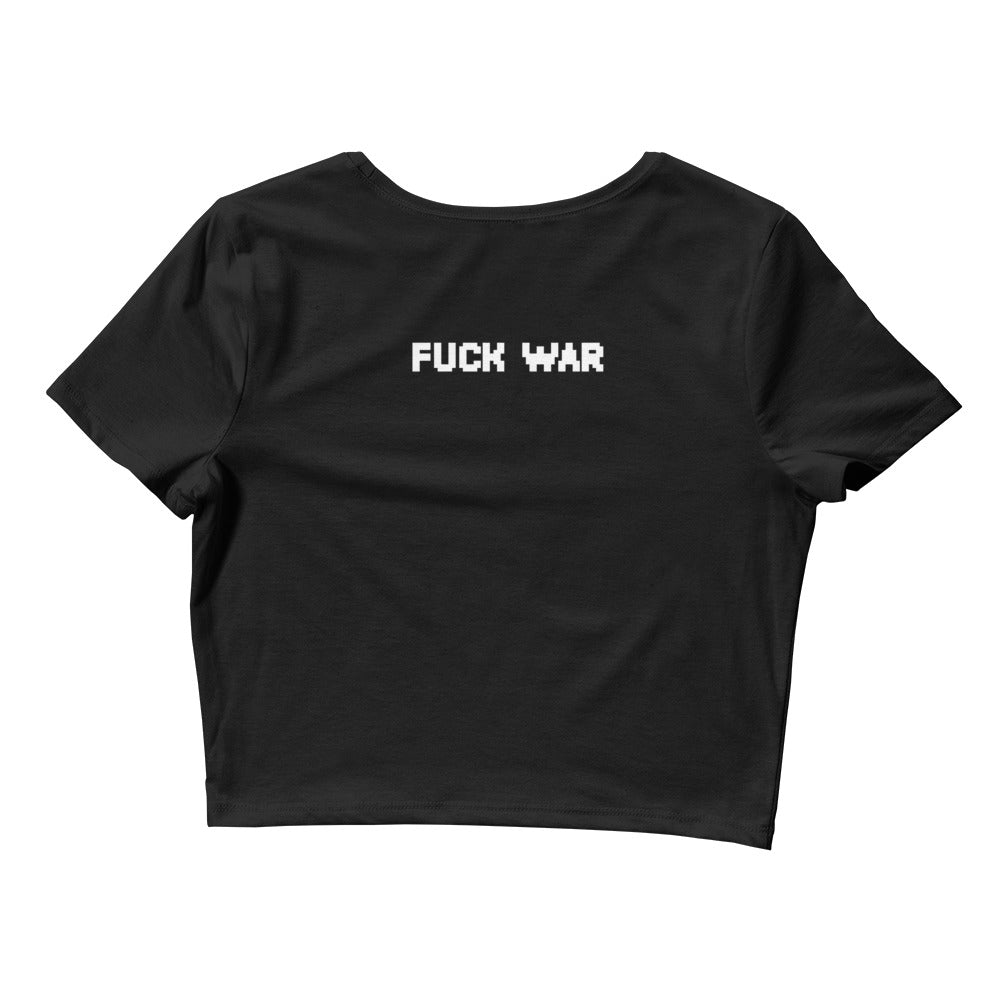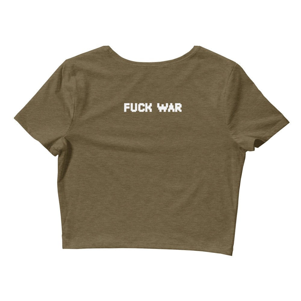Join the movement for peace with our unique Ukrainian-inspired embroidered crop tee. This season's must-have garment is not only trendy, but also sends a powerful message with "FUCK WAR" subtly encrypted in the design. And don't worry - while it's tight-fitting, it's still incredibly comfortable and hits just above the navel. Show your support for Ukraine with this stylish and meaningful top.