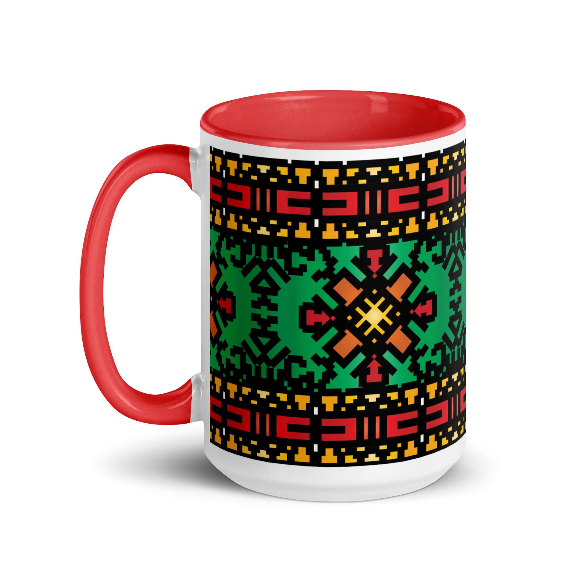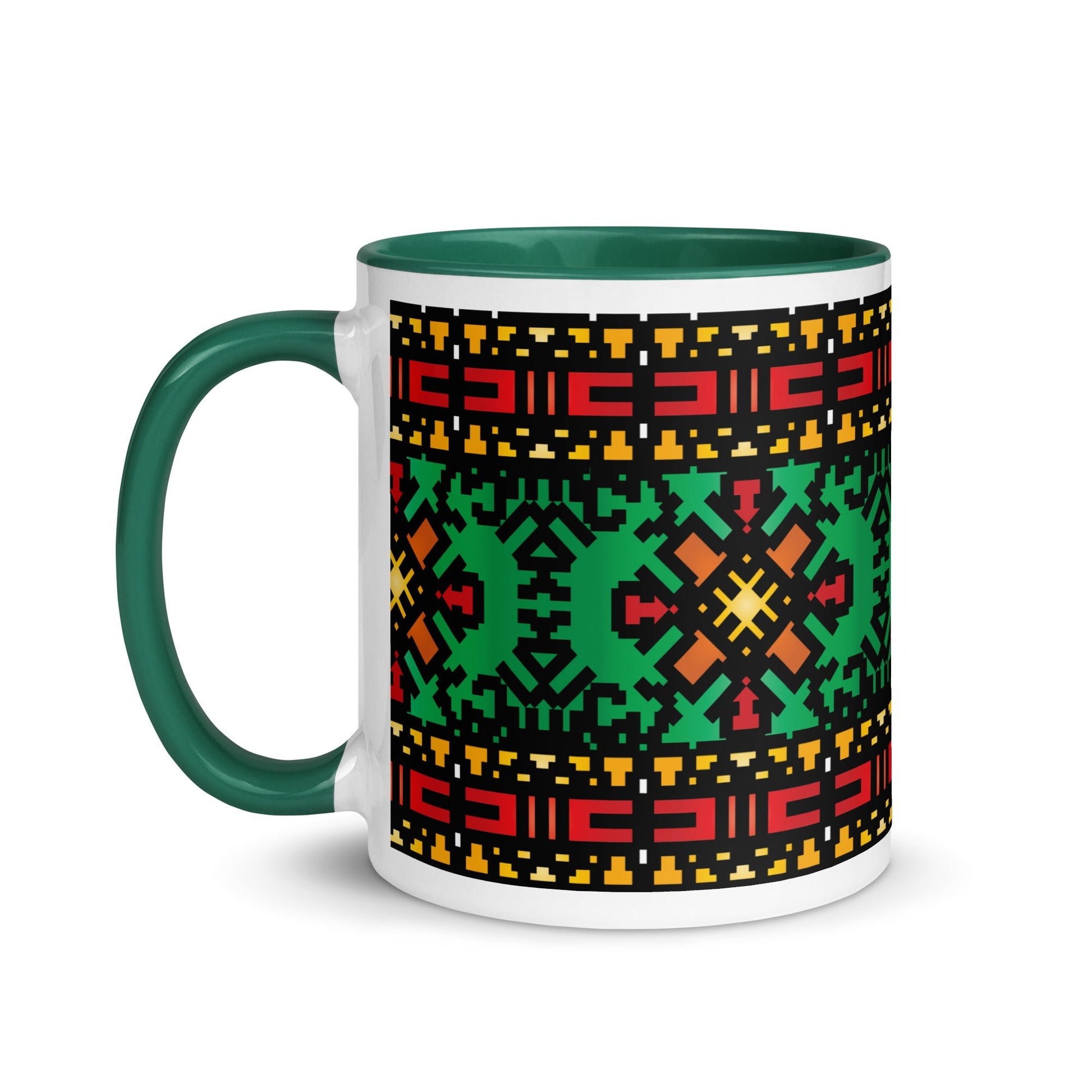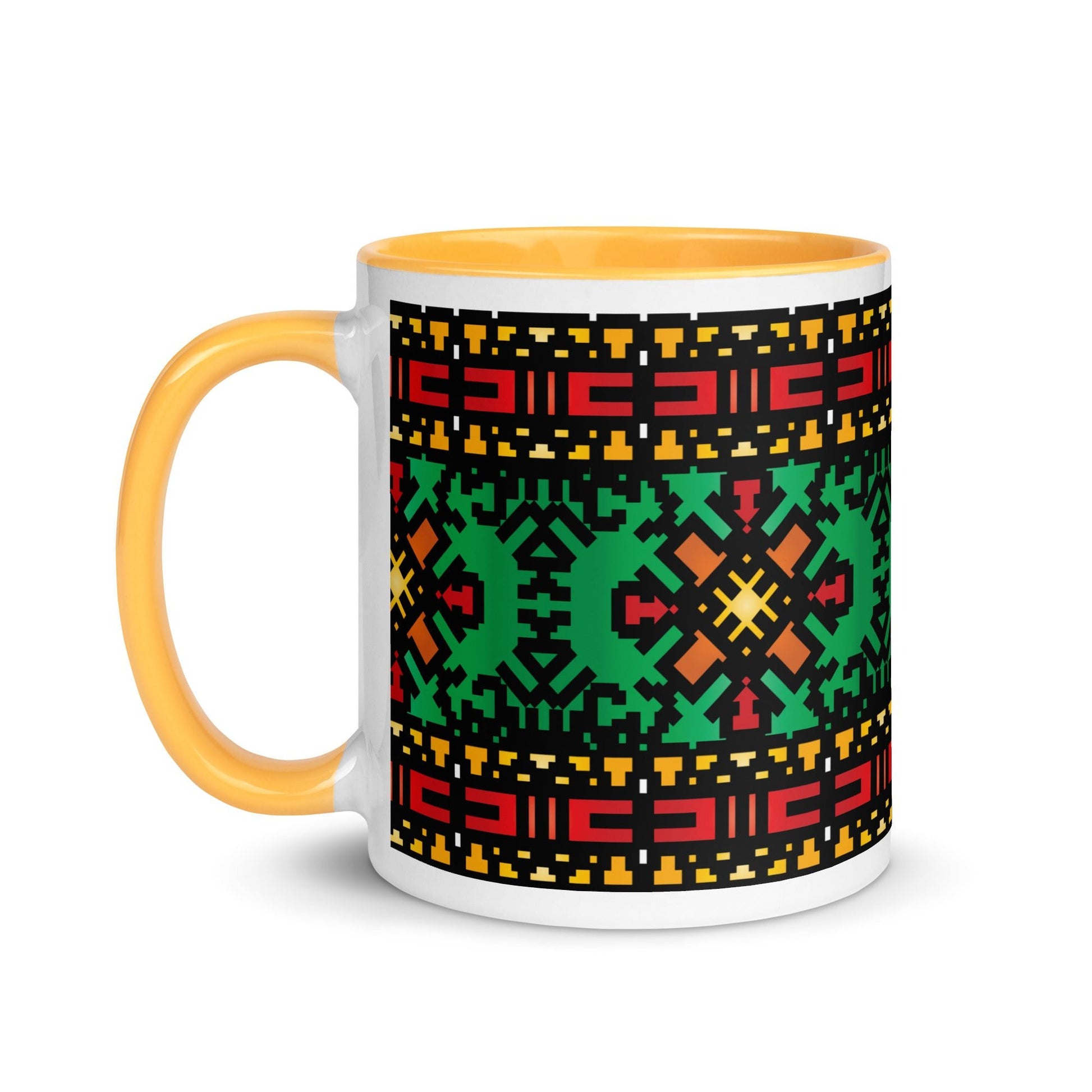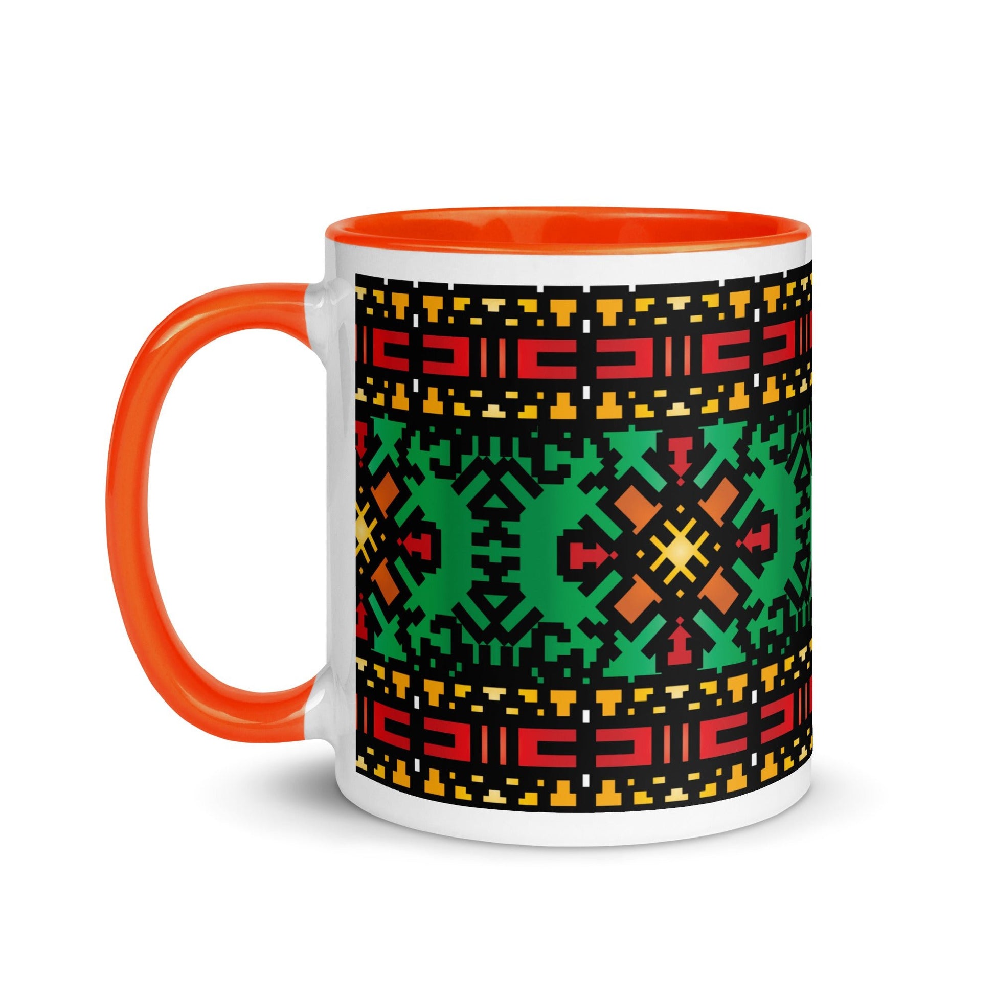 Add a splash of color to your morning coffee or tea ritual! These ceramic mugs not only have a fun festive design on them, but also a colorful rim, handle, and inside, so the mug is bound to spice up your mug rack.
