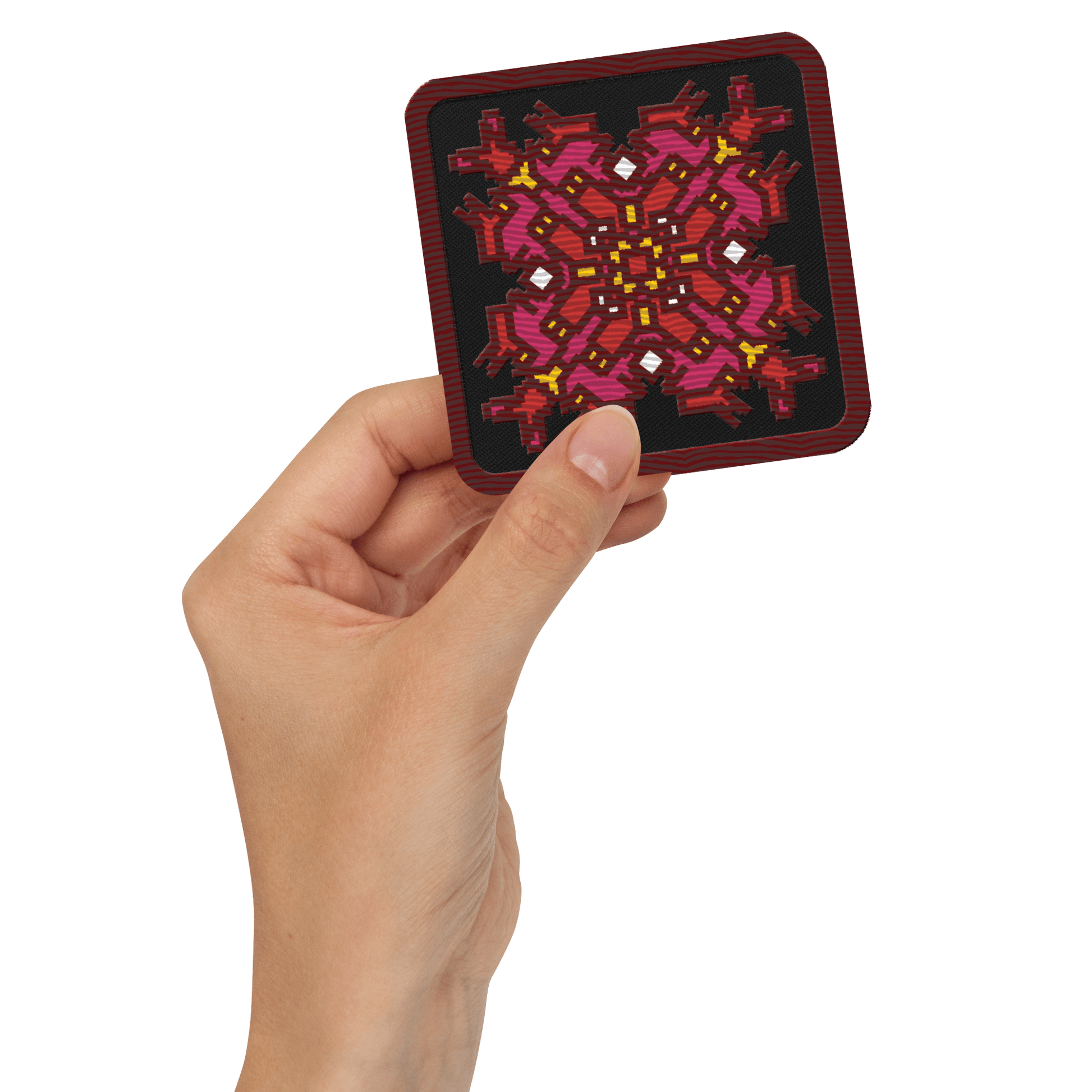 • Attachment options: iron-on, sew-on, or safety pin