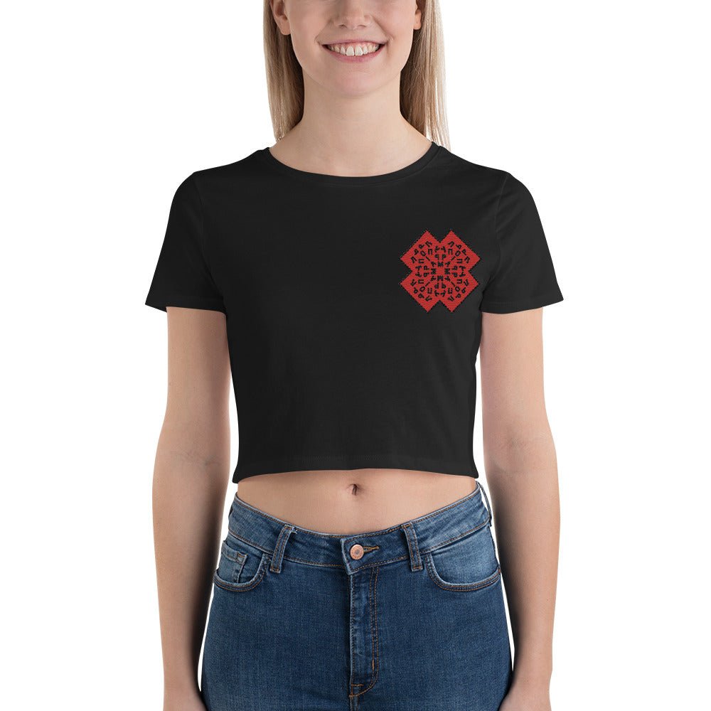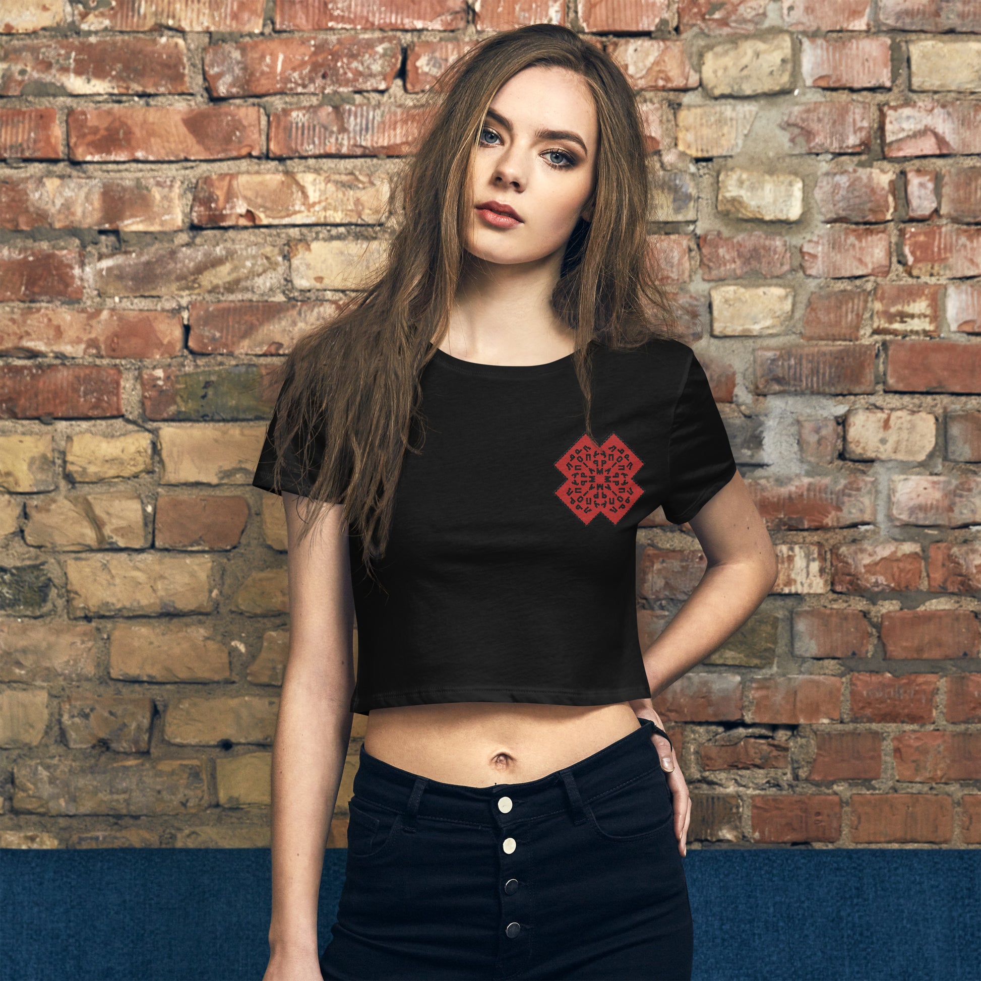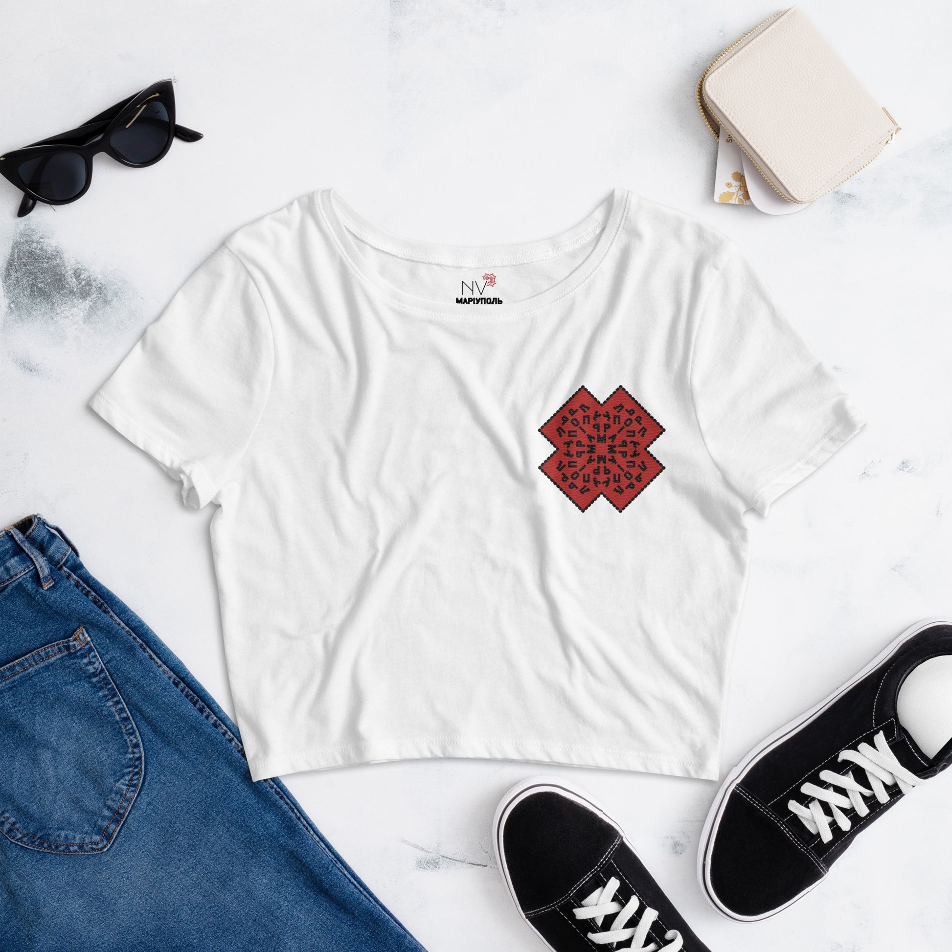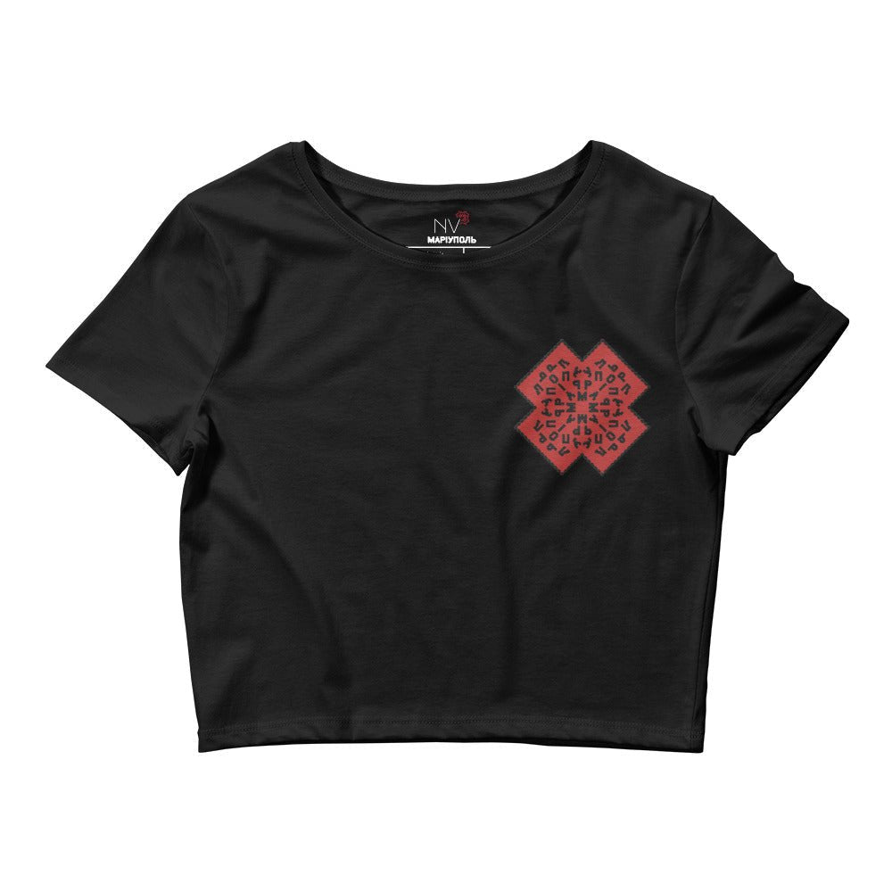 Introducing the Mariupol Women's Crop Tee - a must-have garment for the season! This chic top flatters your figure and provides comfortable confidence. It's crafted from a premium blend of cotton and polyester, ensuring long-lasting durability and luxurious softness. Don't miss out on adding this essential item to your collection! Featuring a unique embroidery design, this top represents the courage, pain, and resilience of those who fought for Mariupol. A powerful reminder that their sacrifices will never be forgotten.