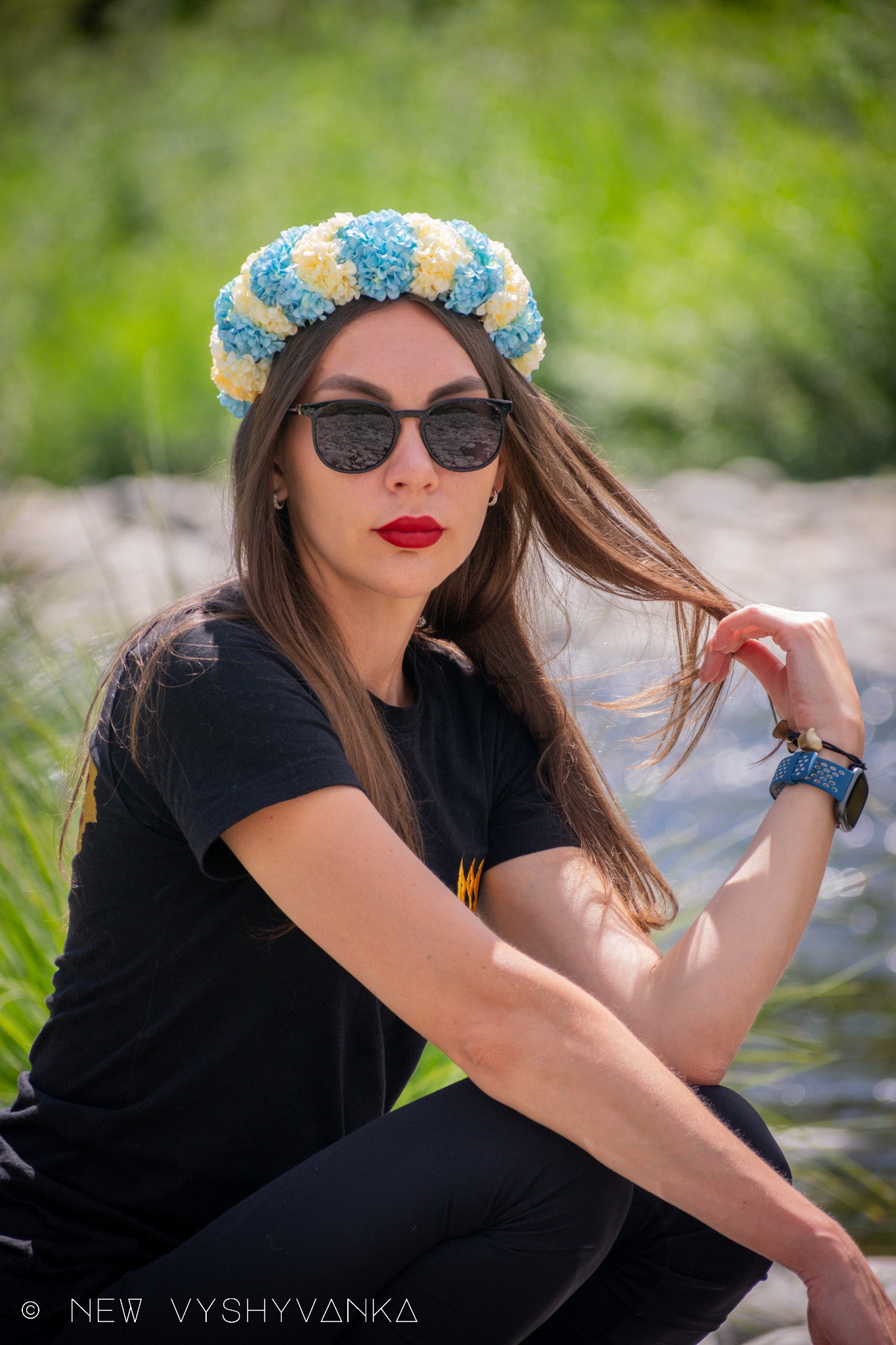 Wearing our Blue and Yellow Flower Crown Ukrainian Vinok, you proudly embrace the essence of Ukrainian heritage, representing unity and strength within the nation's spirit.