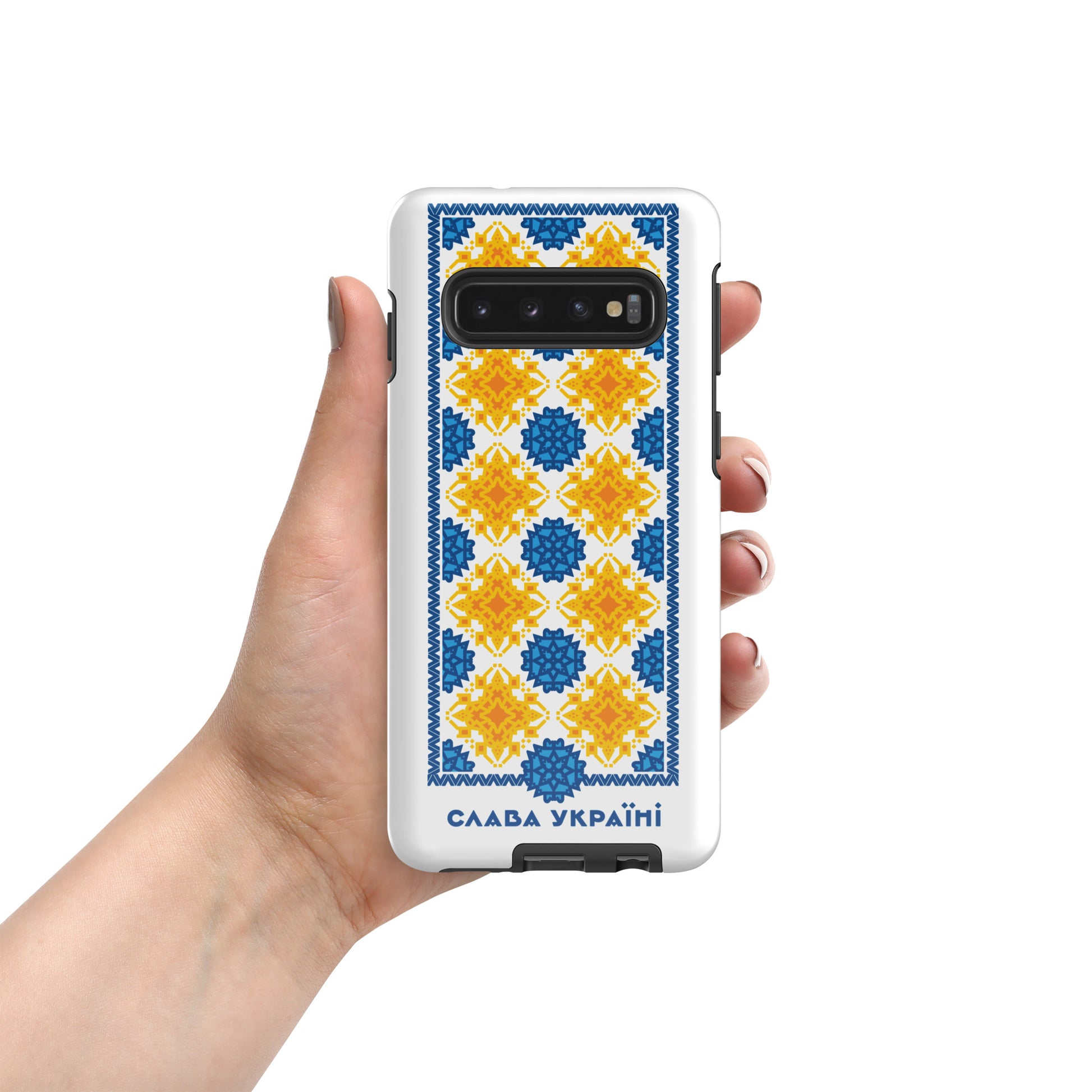 Rev up your phone's style with this sturdy yet stylish phone case. It boasts our chic vyshyvanka pattern featuring the phrase Слава Україні (Slava Ukrayini - Glory to Ukraine) cleverly incorporated. Made with tough, shock-absorbing materials, it'll shield your phone from impacts and scrapes. And with its dual-layer design, it offers top-notch durability and defense. Shake things up and give your phone some playful protection!