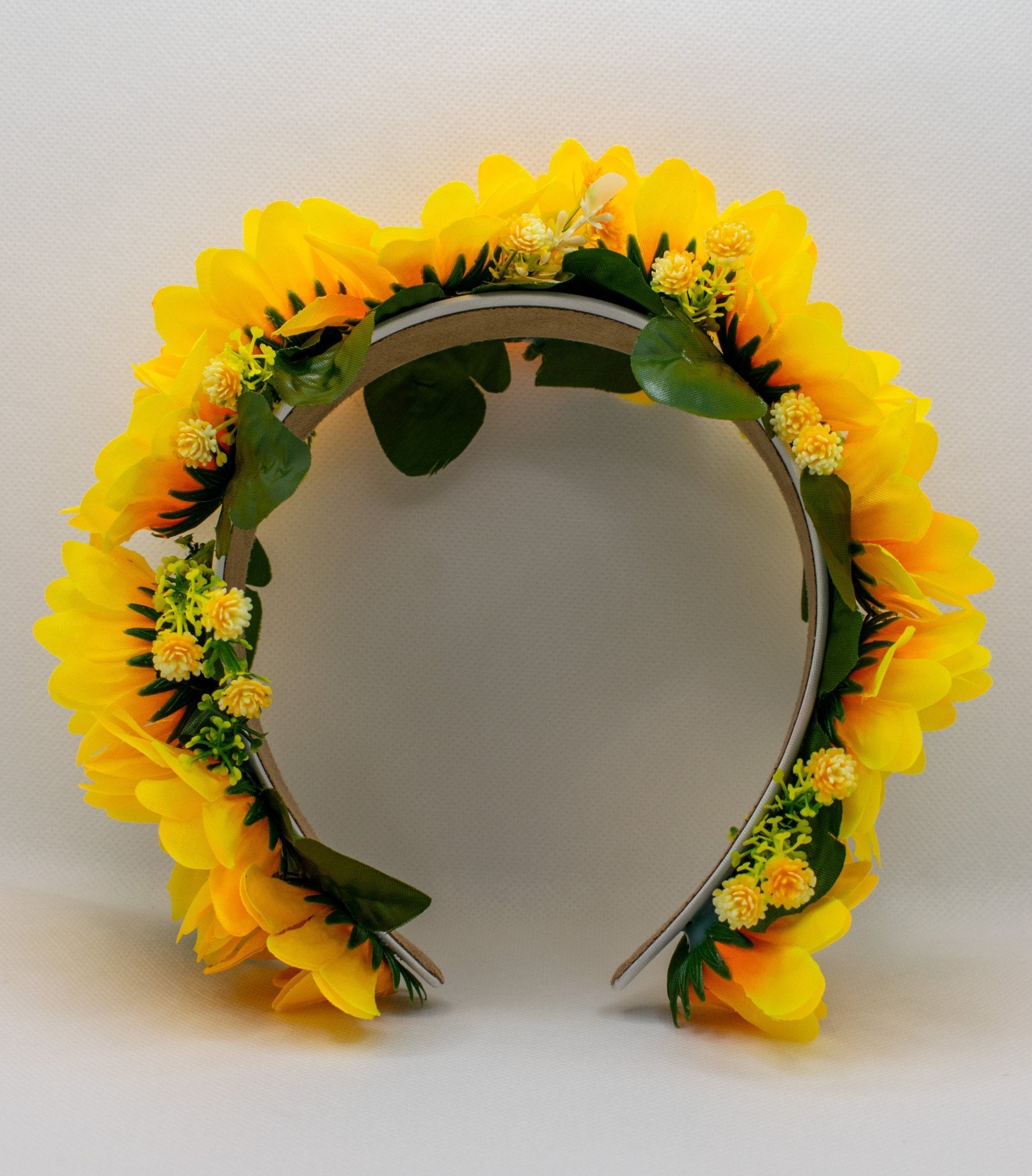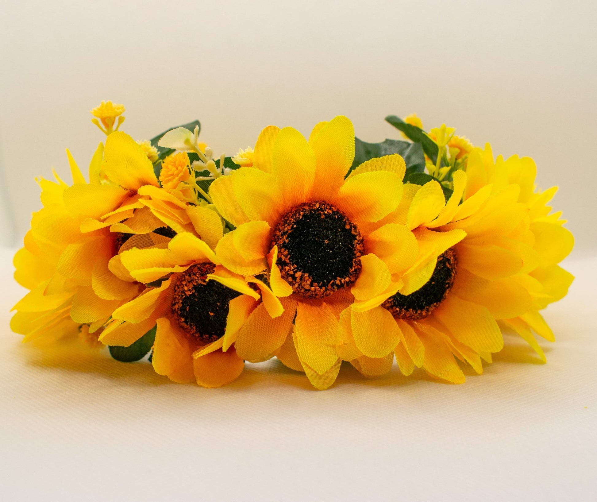 Introducing our enchanting Sunflower Flower Crown, a delightful accessory that embodies the essence of Ukrainian symbolism and natural beauty. Handcrafted with exquisite artificial sunflowers, this crown represents happiness, vitality, abundance, prosperity, admiration, and adoration.