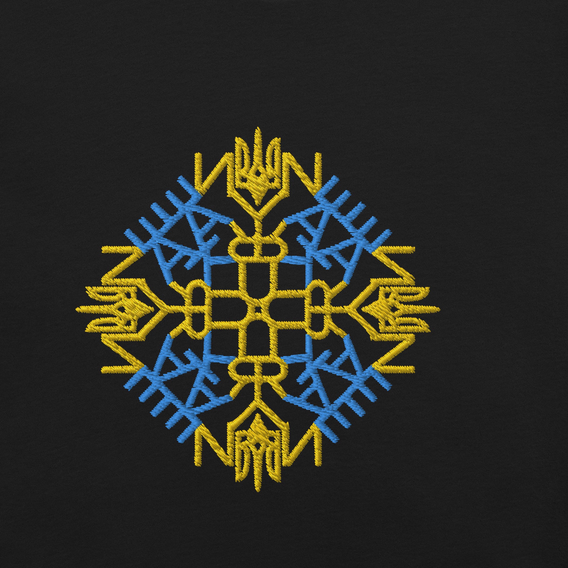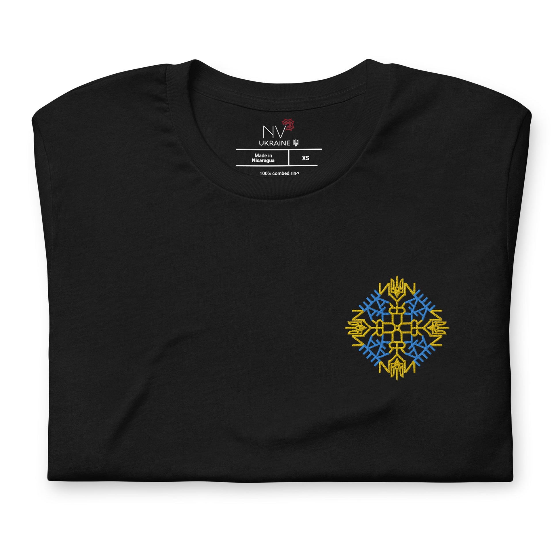 Show off your love for Ukraine with our minimalist t-shirt, featuring a unique embroidery design that represents the colors of the Ukrainian flag. The word "Ukraine" and the gold trident are intricately woven into the design, making it a standout piece that sets itself apart from other ordinary t-shirts.
