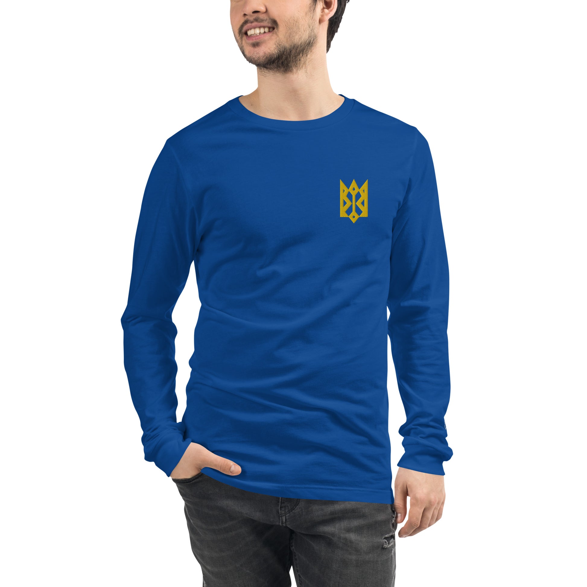 The coat of arms featured on our long sleeve tee is a unique interpretation created by Mykola Bytynskyi, a talented Ukrainian graphic designer, in the 1930s for the "Album of uniforms of the Ukrainian Army and Navy during the Liberation Struggle of 1917–1921". This design is a symbol of strength and resilience, representing the unwavering spirit of the Ukrainian people.