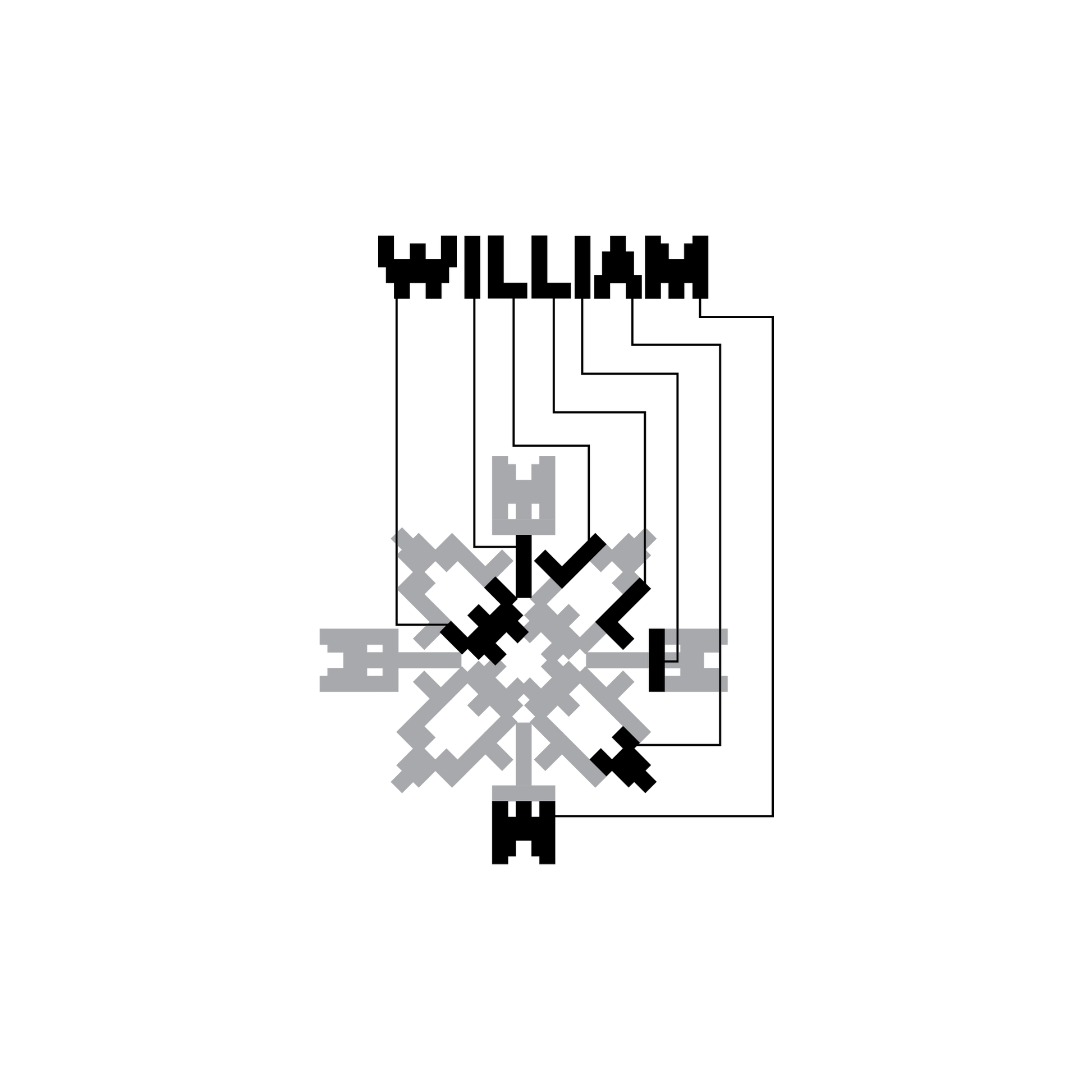 I took the letters of William and turned them into a geometric embroidery pattern — the same way Ukrainian ornamental designs have always been built, from a center point outward. It looks like a decorative motif. Look closer and the name is right there, hidden in the geometry.